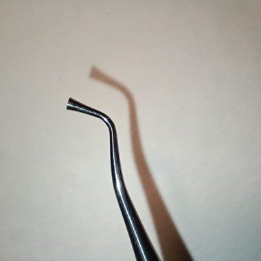 Ponta: Duas pontas ativas, uma arredondada e outra achatada, adaptadas para diferentes áreas da cavidade.