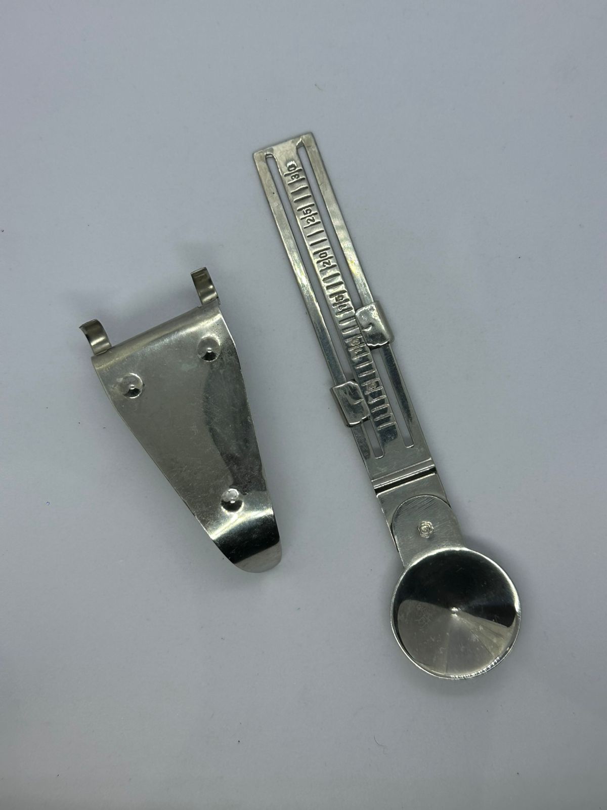 Balança mecânica de precisão utilizada para pesar amálgama e mercúrio em proporções exatas para uso clínico.