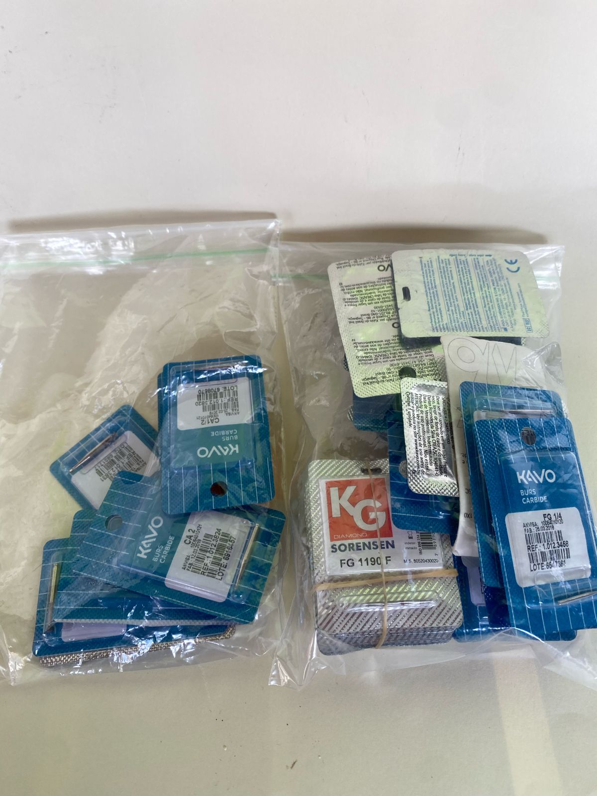 Conjunto com brocas diversas para uso odontológico.