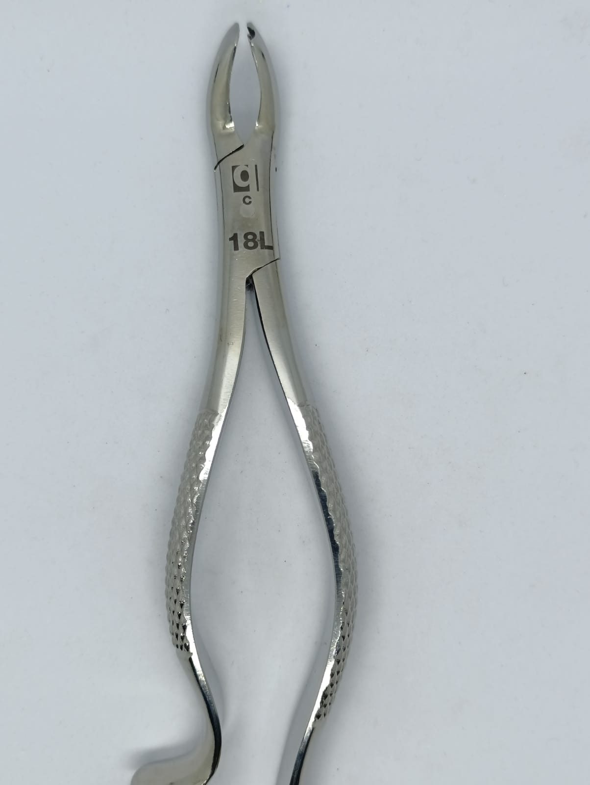 Molares superiores esquerdos. As pontas são curvas para facilitar a remoção dos dentes superiores com raízes divergentes.