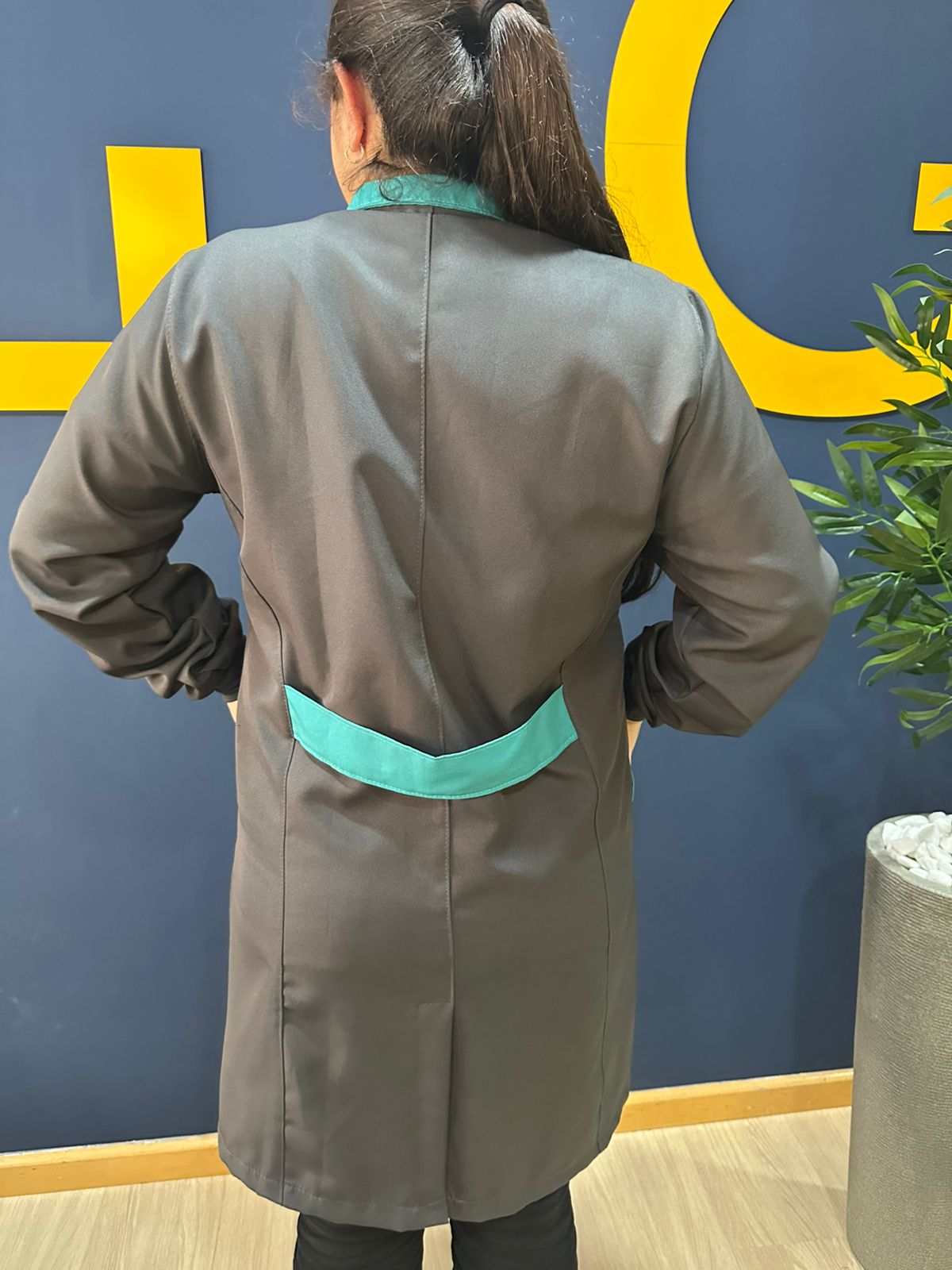 O Jaleco Unissex Cinza Escuro une sofisticação e funcionalidade em uma peça essencial para o dia a dia odontológico.