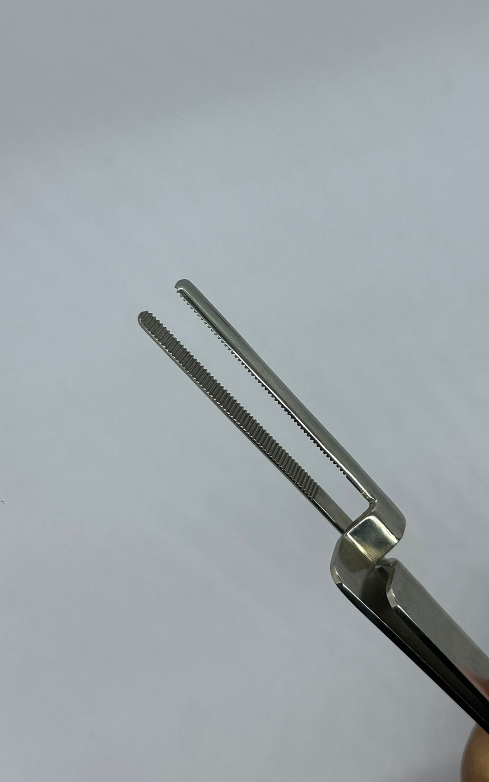 A Pinça Müller para carbono é um instrumento odontológico especialmente desenvolvido para o manuseio de papel carbono articular, utilizado na verificação dos pontos de contato e oclusão entre os dentes. Seu design fino e curvado permite acesso preciso à região posterior da cavidade bucal, sem comprometer a visibilidade ou o conforto do paciente.