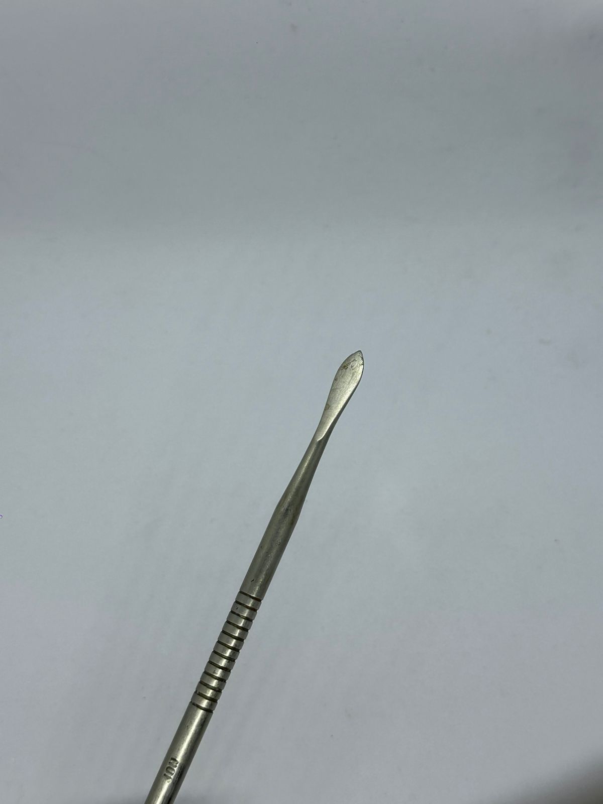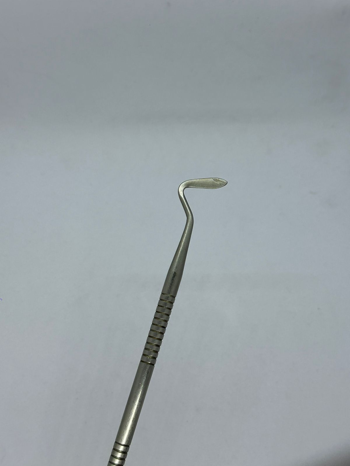 Instrumento cirúrgico fino e cortante usado para seccionar fibras periodontais e facilitar exodontias, especialmente em dentes com retenção.